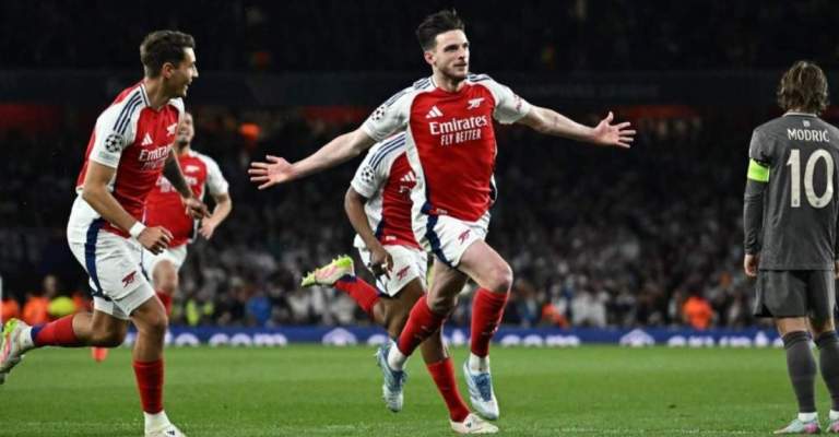 لا تزال جماهير ريال مدريد تتذكر ما فعله ديكلان رايس في ربع نهائي دوري أبطال أوروبا الموسم الماضي، حين قاد أرسنال لإقصاء الفريق الملكي بعد فوز كبير في ملعب الإمارات (3-0)، قبل تأكيد التفوق في الإياب على ملعب سانتياغو برنابيو (2-1).