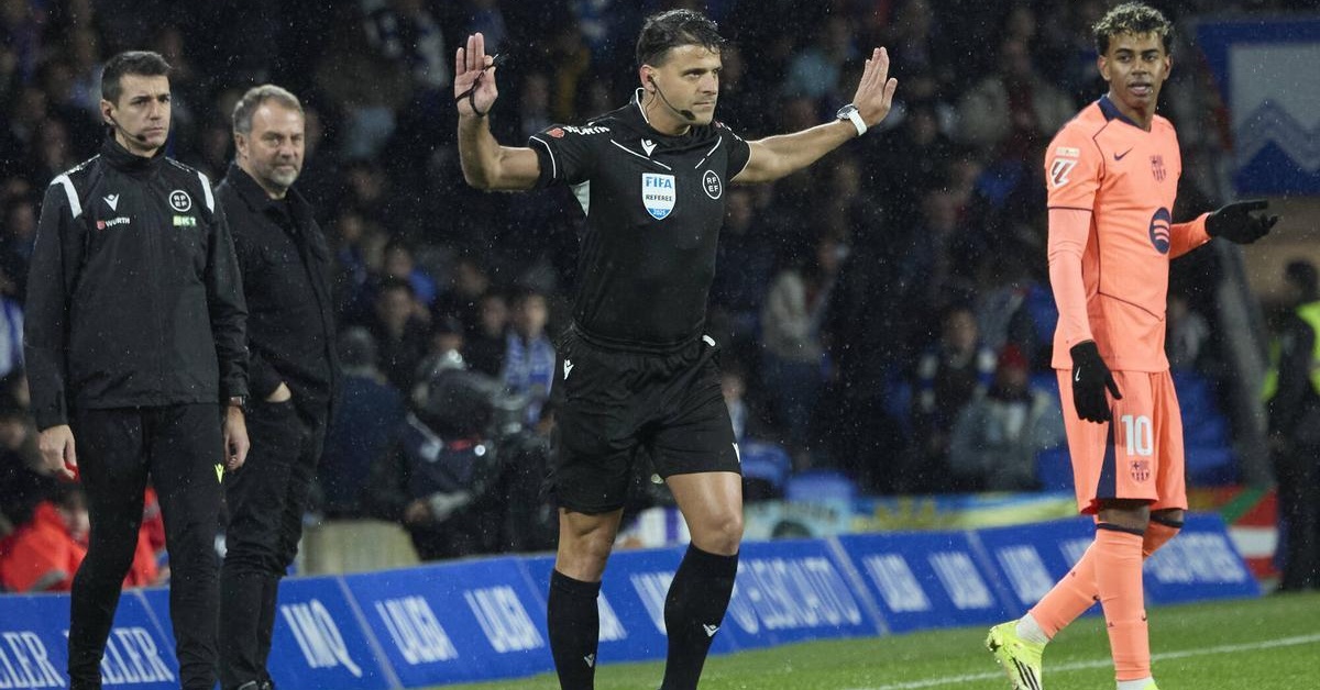 في أنويتا، ألغى جيل مانزانو هدفًا لـ فيرمين بداعي خطأ سابق على داني أولمو، بينما تجاهل مخالفة مماثلة قبل هدف ريال سوسيداد الأول، وألغى هدفًا آخر لـ لامين يامال بداعي تسلل مثير للجدل. كما جاءت البطاقة الحمراء لـ كارلوس سولير وسط أجواء مشحونة، قبل أن يتدخل الفار لتصحيح قرار بشأن تدخل عنيف على بيدري، رغم أن الحكم كان في موقع مثالي لمشاهدة المخالفة.