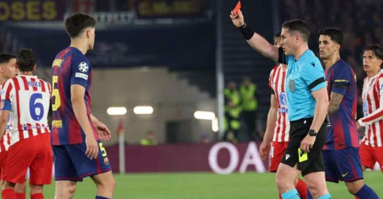 تعقّدت مهمة برشلونة في ربع نهائي دوري أبطال أوروبا بعد سلسلة قرارات تحكيمية مثيرة للجدل خلال مواجهة أتلتيكو مدريد، كان أبرزها طرد المدافع الشاب باو كوبارسي في توقيت حاسم من الشوط الأول.
