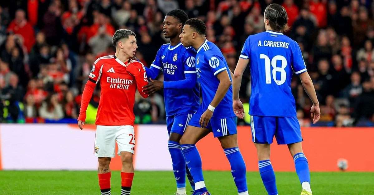 أشعل كيليان مبابي الأجواء بعد مباراة ريال مدريد وبنفيكا بدوري أبطال أوروبا، عقب الواقعة المثيرة للجدل التي تعرض لها فينيسيوس جونيور. المباراة انتهت بفوز الفريق الملكي بهدف دون رد، سجله النجم البرازيلي في الدقيقة 50، لكن الاحتفال بالهدف تحول إلى لحظة صادمة بعد مزاعم تعرضه لإساءات عنصرية من أحد لاعبي بنفيكا.
