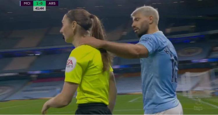 تصرف الأرجنتيني سيرخيو أجويرو، مهاجم مانشستر سيتي الإنجليزي، بشكل غريب خلال تعامله مع سيان ماسي، حكمة الراية في لقاء فريقه مع أرسنال، بالدوري الإنجليزي الممتاز.