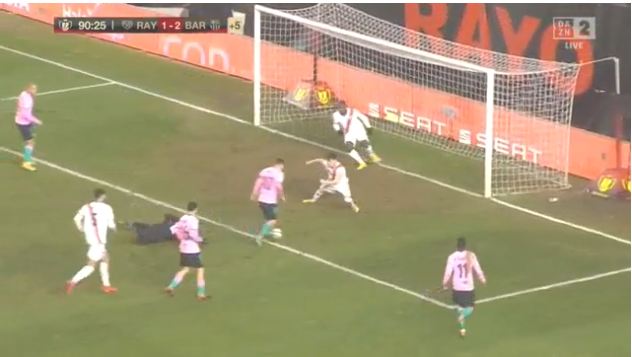 تمكن دي يونج من أن يحسم صعود برشلونة بالهدف الثاني في الدقيقة 80 بعد تمريرة رائعة من ميسي وعرضية من البا امام المرمي وصلت للهولندي الذي سجل هدف الفوز لفريقه . وقبل نهاية المباراة اضاع ميسي فرصة تسجيل الهدف الثالث لتنتهي المباراة بهدفين لهدف واحد للبارسا .